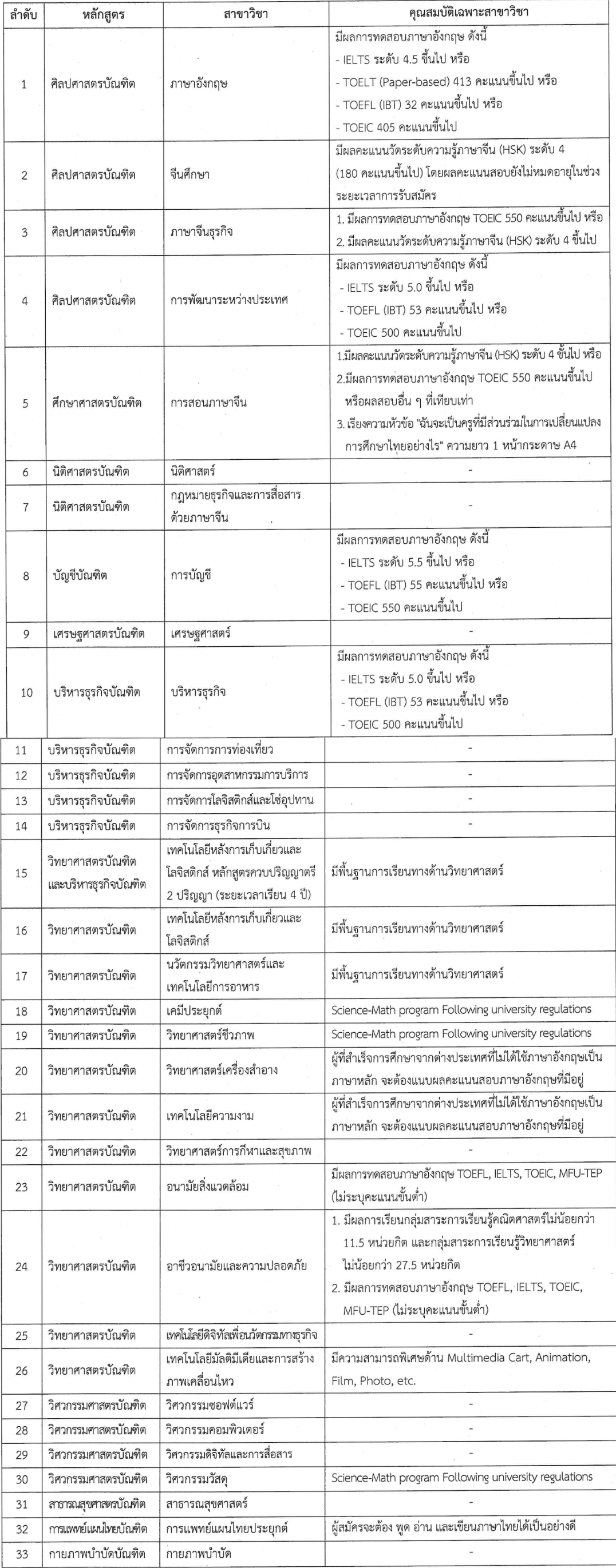 TCAS65 รอบ 4 : มหาวิทยาลัยแม่ฟ้าหลวง (8 โครงการ)