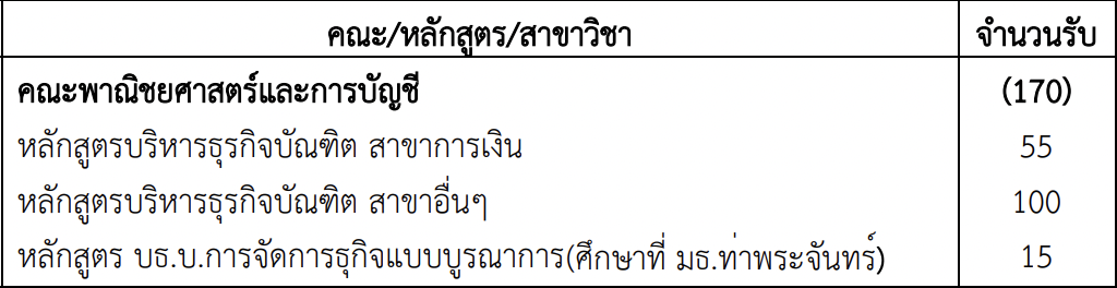- สาขาวิชาปรัชญา การเมือง และเศรษฐศาสตร์ โครงการพิเศษ (ศูนย์ลำปาง) 42 ที่นั่ง