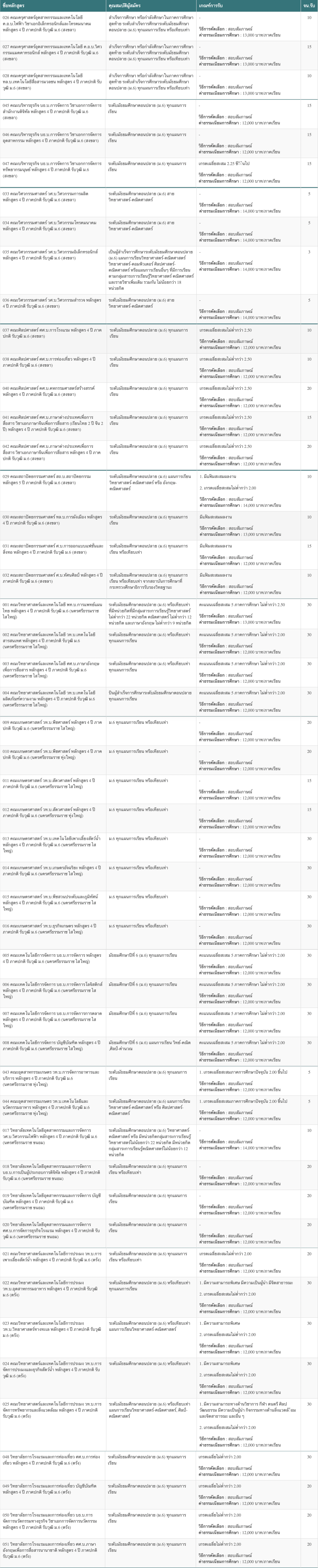 สาขาวิชาที่เปิดรับ-เกณฑ์การคัดเลือก