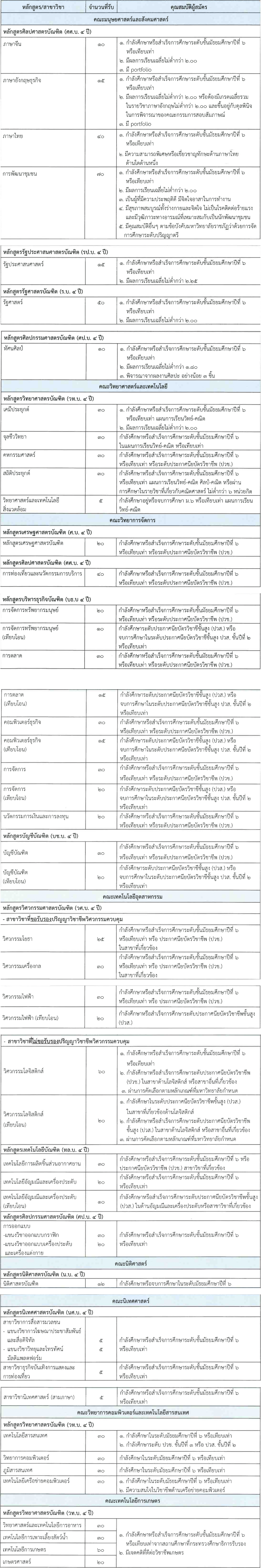 สาขาวิชาที่เปิดรับ และเกณฑ์การคัดเลือก