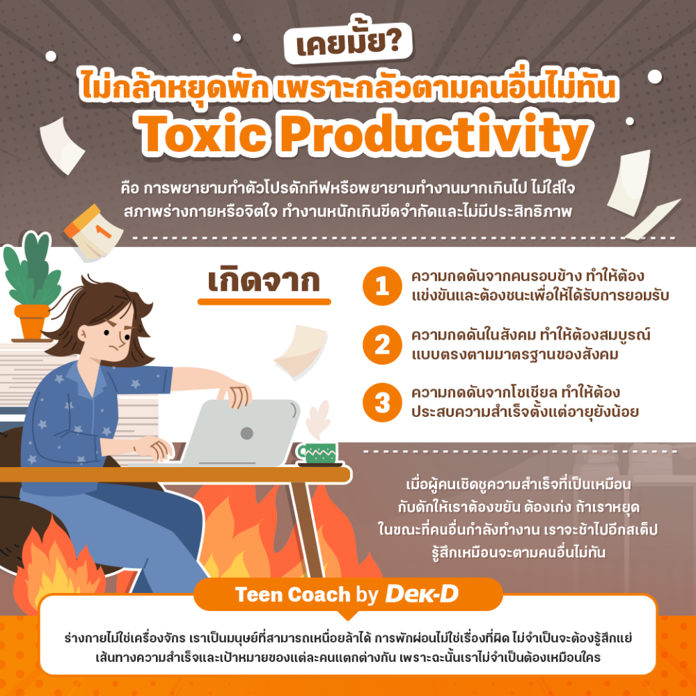 - Toxic Productivity ความต้องการทำงานหรือทำตัวโปรดัคทีฟที่มากเกินไป จนไม่เกิดประสิทธิภาพ