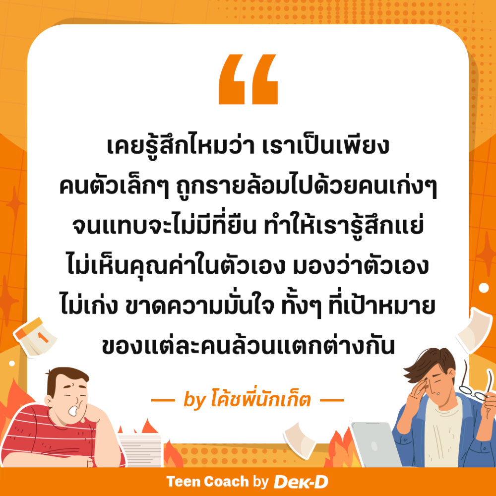 เราเคยรู้สึกไหมว่า เราก็เป็นเพียงคนตัวเล็ก ๆ คนหนึ่งในสังคม ถูกรายล้อมไปด้วยคนเก่ง ๆ เราแทบจะไม่มีที่ยืนในเมื่อสังคม รอบตัวให้พื้นที่กับคนที่ประสบความสำเร็จมากกว่า สิ่งเหล่านี้เป็นปัจจัยที่ทำให้เรารู้สึกแย่ ไม่เห็นคุณค่าในตัวเอง มองว่าตัวเองไม่เก่ง ขาดความมั่นใจ หรือกลายเป็นคนล้มเหลวไปเลย ทั้งที่เป้าหมายของแต่ละคนล้วนแตกต่างกัน เราไม่สามารถนำมาเปรียบเทียบกันได้ ซึ่งคนเหล่านี้ก็ไม่ผิด หากเขาจะภูมิใจกับความสำเร็จของตนเอง แต่สิ่งเหล่านี้ก็สามารถกลายเป็น “กับดัก” ให้คนติดหล่ม