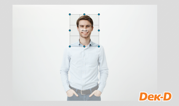 หลังจากกำหนดตัวเลขแล้ว โปรแกรมก็จะสร้างกรอบรูปขึ้นมา น้องๆ สามารถขยับกรอบไปตามจุดที่ต้องการได้เลย และถ้ารู้สึกกรอบมันไม่พอดีกับใบหน้า เช่น ทำให้หน้าใหญ่เกินไปก็สามารถลากจุดวงกลมเพื่อขยายขนาดของรูปภาพให้ได้สัดส่วนตามที่ต้องการได้ แต่สุดท้ายแล้ว อย่าลืมว่าห้ามเกินขนาดที่กำหนดค่ะ
