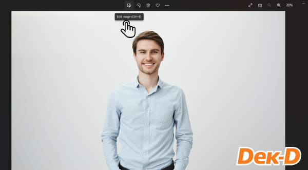 ให้น้องๆ เลือกรูปภาพที่ต้องการขึ้นมา จากนั้นบริเวณด้านบนจะมีแถบเครื่องมือสำหรับปรับแต่งรูปภาพ ให้เลือกสัญลักษณ์ซ้ายสุดที่เป็นรูป รูปภาพ+ปากกา เพื่อเข้าสู่การปรับแต่งรูปภาพ