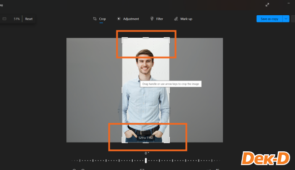 เมื่อเราได้ขนาดรูปตามที่ต้องการแล้ว ให้กด Save as copy ที่ด้านขวามือ เพียงเท่านี้ก็ได้รูปตามที่เราต้องการแล้ว