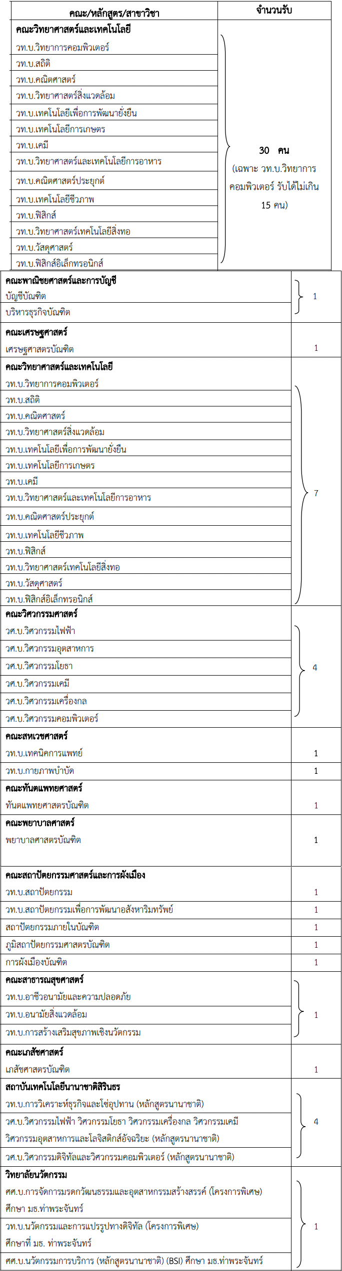 - วิทยาลัยสหวิทยาการ สาขาวิชาสหวิทยาการ 70 ที่นั่ง