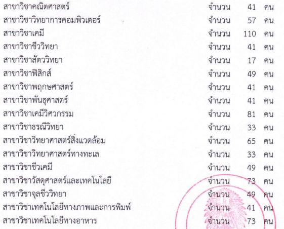 - คณะวิทยาศาสตร์ (17 สาขาวิชา) 25 ที่นั่ง
