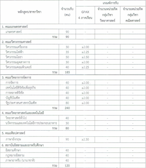 - บางสาขาวิชากำหนด GPAX ขั้นต่ำด้วย