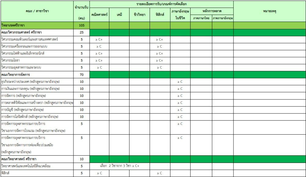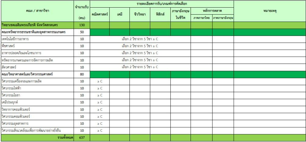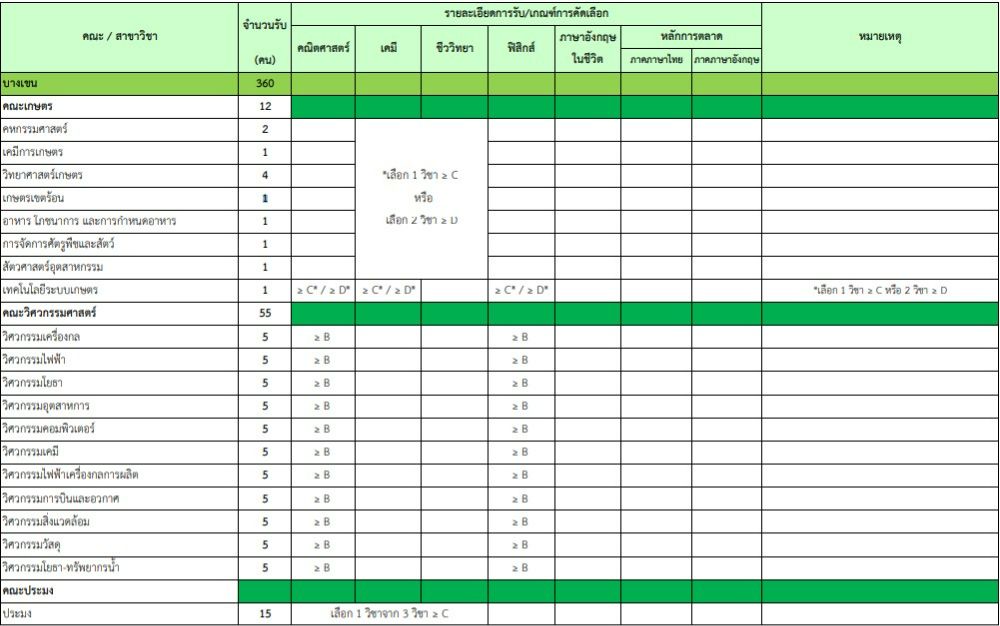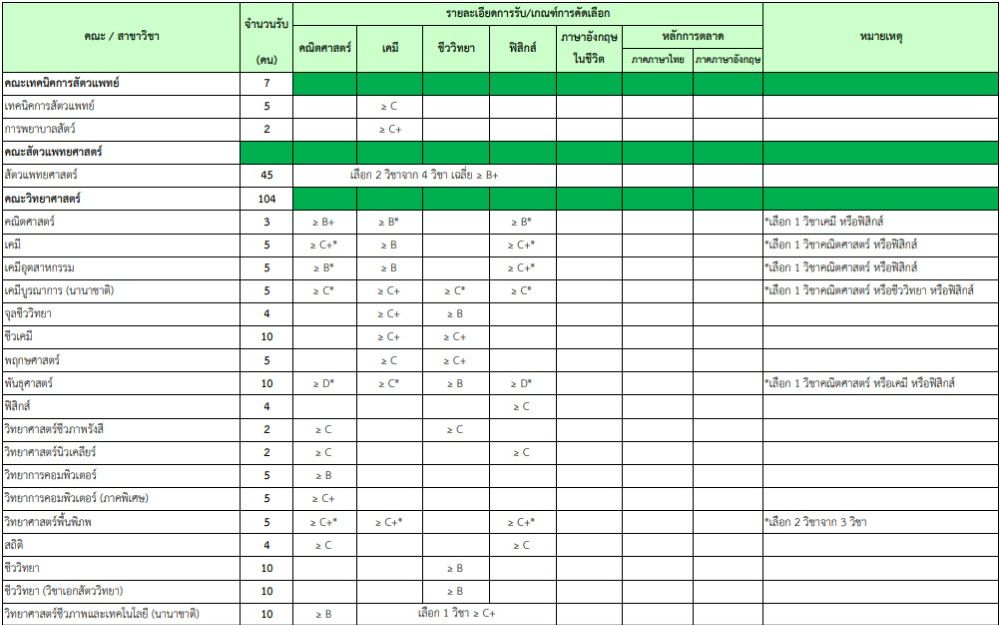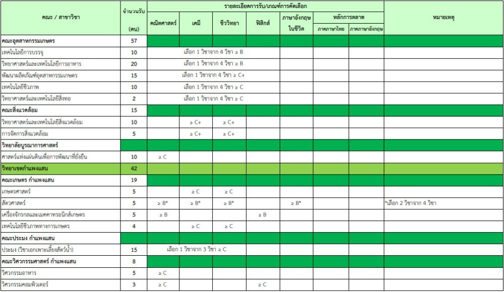 - เปิดรับคณะเกษตร, คณะวิทยาศาสตร์, คณะวิศวกรรมศาสตร์, คณะเศรษฐศาสตร์, คณะอุตสาหกรรมเกษตร, คณะมนุษยศาสตร์, คณะบริหารธุรกิจ