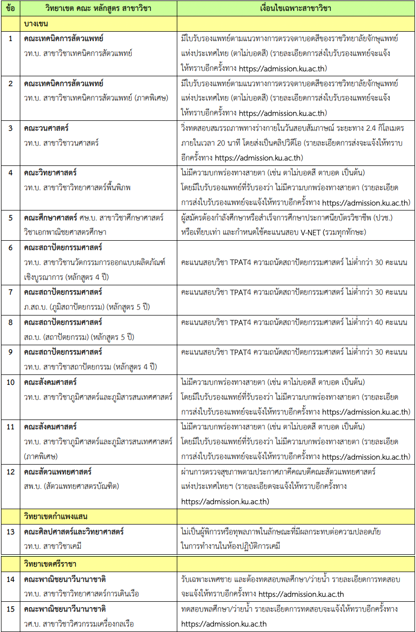 - โครงการจัดตั้งวิทยาเขตสุพรรณบุรี ทั้ง 2 วิชาเอก ใช้คะแนน TGAT วิชาเดียว 100%