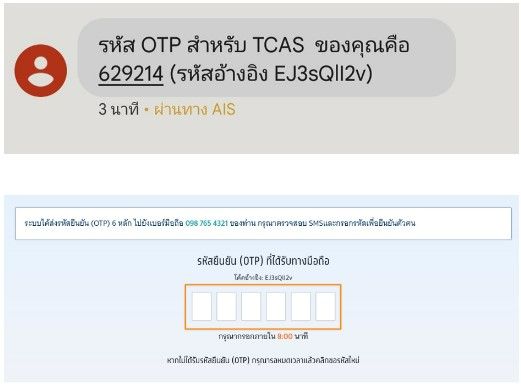 2. เลือกยืนยันเบอร์มือถือ ระบบจะส่ง OTP ไปทางหมายเลขโทรศัพท์ ให้น้องๆ เอา OTP ที่ส่งมาที่ SMS เบอร์ที่ลงทะเบียนไว้ มากรอกเพื่อยืนยันตัวตน