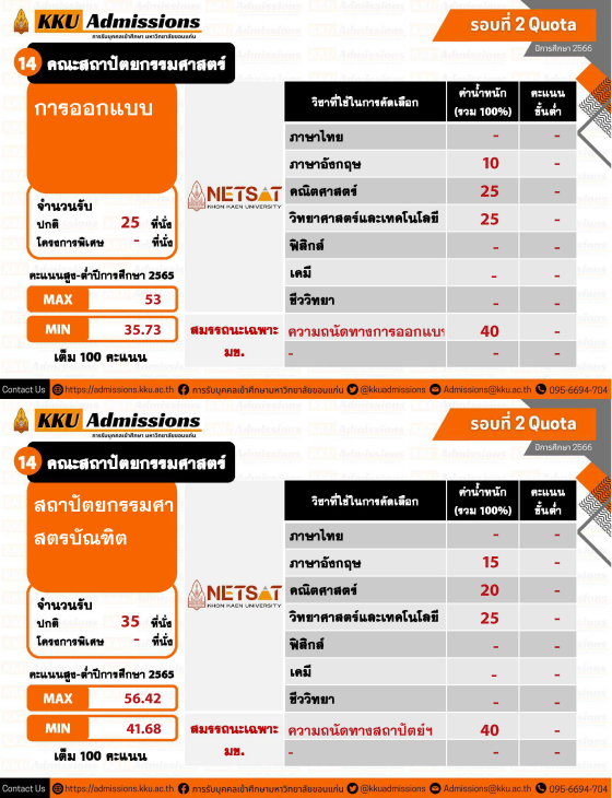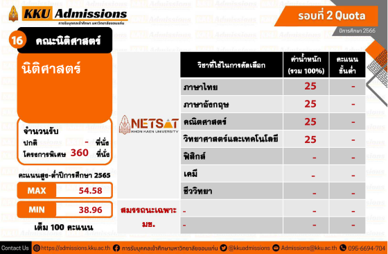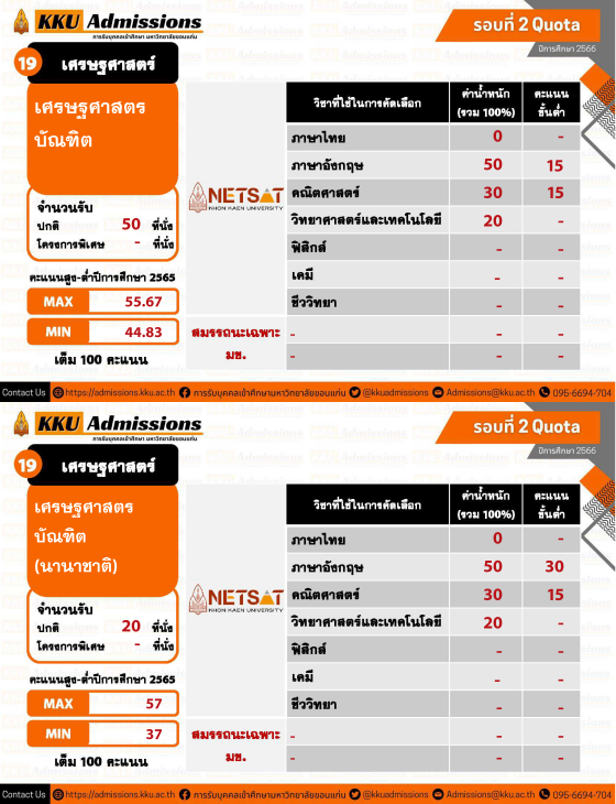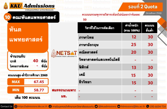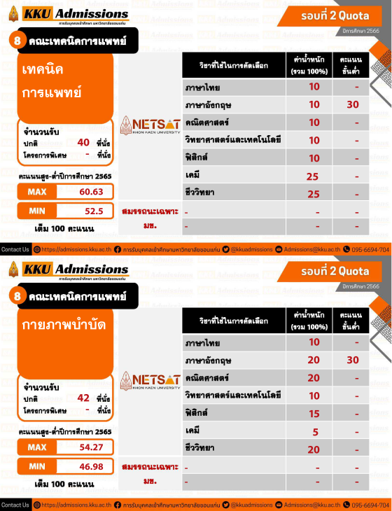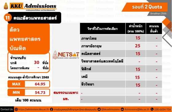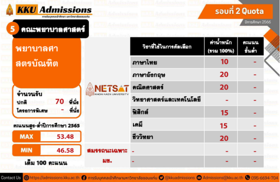 ใครที่สนใจยื่นสมัครโควตาภาคตะวันออกเฉียงเหนือข้างต้น ต้องเตรียมตัวให้ดี ม.ขอนแก่น เปิดรับสมัครสอบ NETSAT 1 - 19 พฤศจิกายน นี้ และเตรียมจัดสอบวันที่ 28 - 29 มกราคม 2566 ค่ะ