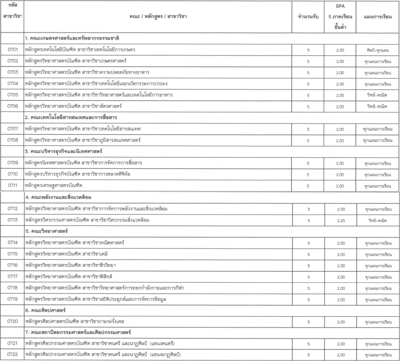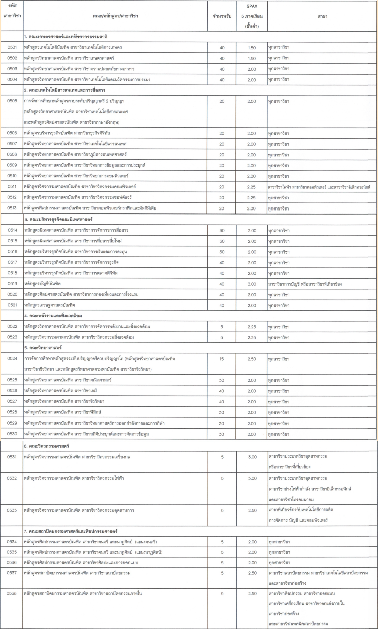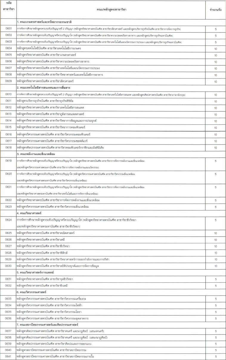 สาขาวิชาที่เปิดรับ