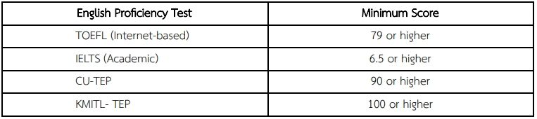 - มีคะแนนภาษาอังกฤษอย่างใดอย่างหนึ่งตามเกณฑ์ที่กำหนด