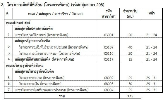 - แบ่งเป็นโครงการปกติและโครงการพิเศษ