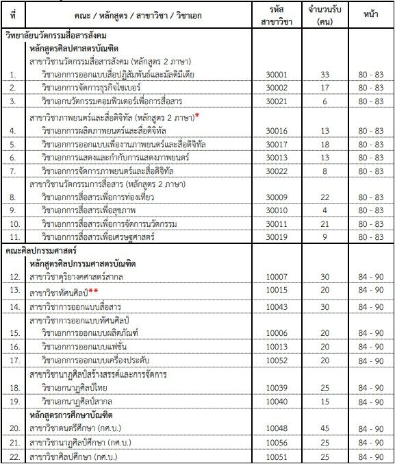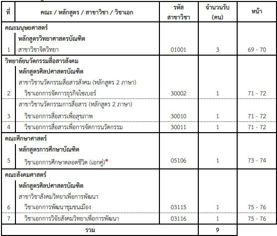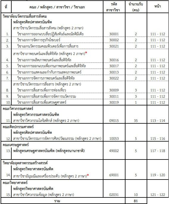 - เปิดรับ 81 ที่นั่ง จาก 6 คณะ