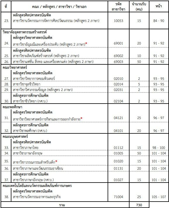 - เปิดรับทั้งหมด 730 ที่นั่งจาก 7 คณะ