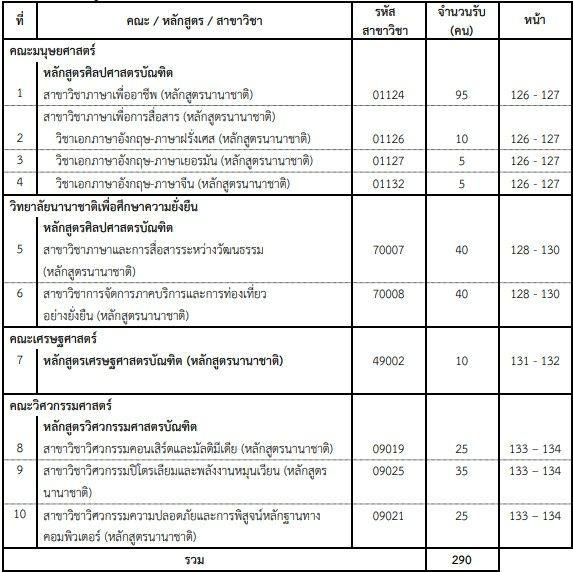 - เปิดรับ 290 ที่นั่ง จาก 4 คณะ