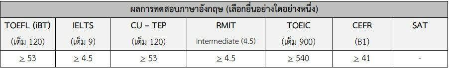 - English Proficiency Test from TOEFL, IELTS, CU-TEP, RMIT, TOEIC or CEFR