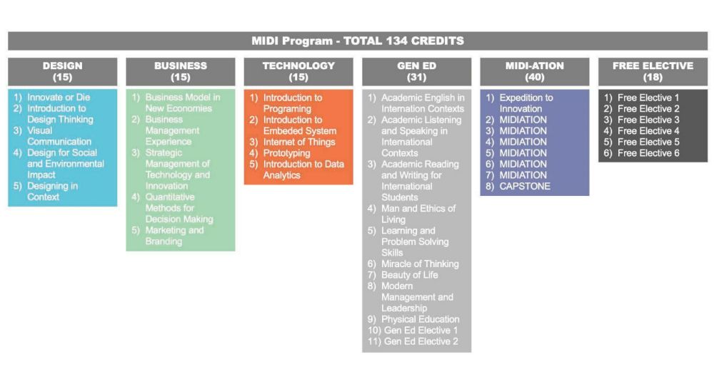 MIDI (Multiple Intelligences for Design Integration) หรือหลักสูตรการบูรณาการการออกแบบด้วยพหุปัญญา (หลักสูตรพหุวิทยาการ) (หลักสูตรนานาชาติ) เป็นหลักสูตรน้องใหม่จากคณะสถาปัตยกรรมศาสตร์และการออกแบบ ม.เทคโนโลยีพระจอมเกล้าธนบุรี ที่จะช่วยสร้างผู้ประกอบการยุคใหม่ โดยโครงสร้างของหลักสูตรจะพัฒนาผู้เรียนบนพื้นฐานการเรียนรู้การสร้างธุรกิจจริง และยังมีองค์ความรู้ด้านเทคโนโลยี นวัตกรรม การบริหารจัดการธุรกิจ การวิจัย ความคิดสร้างสรรค์ และการออกแบบ เพิ่มเข้ามาด้วย