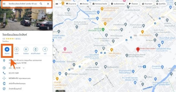 น้องๆ สามารถใช้ google map ในการวางแผนการเดินทาง โดยเลือกจุดหมายปลายทางคือชื่อโรงเรียน จากนั้นเลือกที่ตั้งต้นเป็นบ้านของน้องๆ