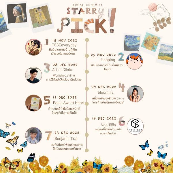 - 13:00 – 15:00 Meet & Greet ศิลปินรับเชิญ ที่จะมาพูดถึงแรงบันดาลใจในการสร้างผลงานศิลปะที่จะเปิดตัวครั้งแรกในนิทรรศการสร้าง Growth mindset และมุมมองใหม่ๆ ให้แก่คนฟังซึ่งเราได้เชิญศิลปินรับเชิญแนวหน้ายุคใหม่ของประเทศไทยมา 11 ท่าน 11 ผลงาน 11 สไตล์ ได้แก่ คุณ Kiwtum, คุณ Tum Ulit, คุณ Art of Hongtae, คุณ Banana Blah Blah, คุณ Manasawii, คุณ 3pucks, คุณโรแมนติกร้าย, คุณ meetmrtwo, คุณ Yugo, คุณถ่าน และคุณ Paerytopia