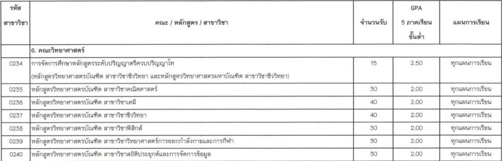 ทุกสาขาต้องมี GPAX ขั้นต่ำ 2.00 ยกเว้นหลักสูตรควบปริญญาตรีและโท ต้องได้ 2.50 ขึ้นไป
