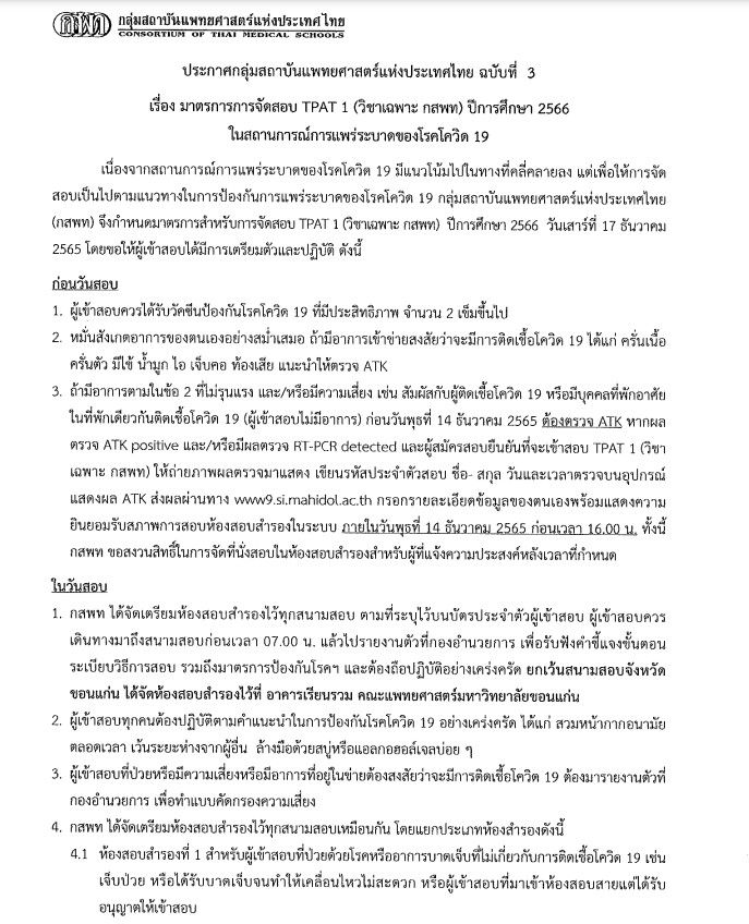 สรุปมาตรการจัดสอบ TPAT1 (วิชาเฉพาะ กสพท)