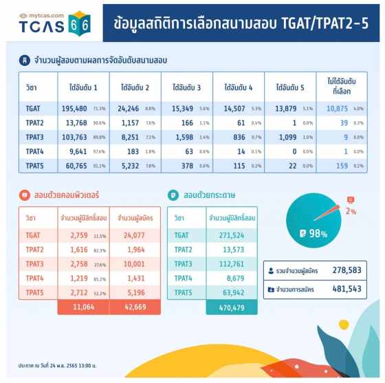 ดูกันชัดๆ! #dek66 ได้สนามสอบ TGAT/TPAT66 อันดับ 1 กี่เปอร์เซนต์