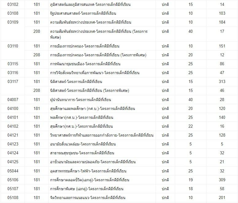 - อันดับ 5 สาขาวิชานิติศาสตร์ รับ 15 สมัคร 313 คน