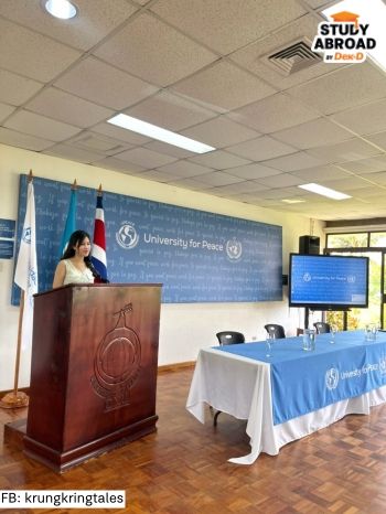 หลังจากมาคอสตาริกาแล้ว พี่ได้เรียนคอร์สพื้นฐาน (Foundation Course) เกี่ยวกับสันติภาพและความขัดแย้งและวิชาพื้นฐาน ป.โท อื่นๆ อย่าง International Law, Gender, Sustainable Development, Environment และ Peace Education ฯลฯ มีอาจารย์ที่เป็นผู้เชี่ยวชาญเฉพาะด้านนั้นๆ ผลัดกันมาสอนที่ UPEACE เลยค่ะ