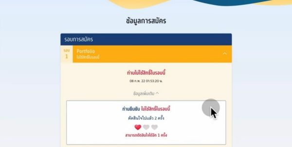 จากนั้นระบบจะกลับมาที่หน้าแสดงผล ขึ้นว่า "ไม่ได้ใช้สิทธิ์" ในรอบนี้