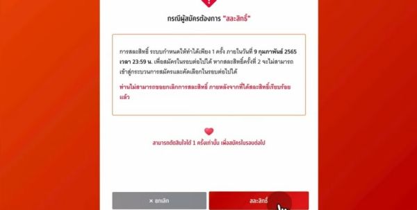 การเข้าระบบมาเพื่อทำรายการ "สละสิทธิ์" จะเป็นวันที่ 9 ก.พ. 66
