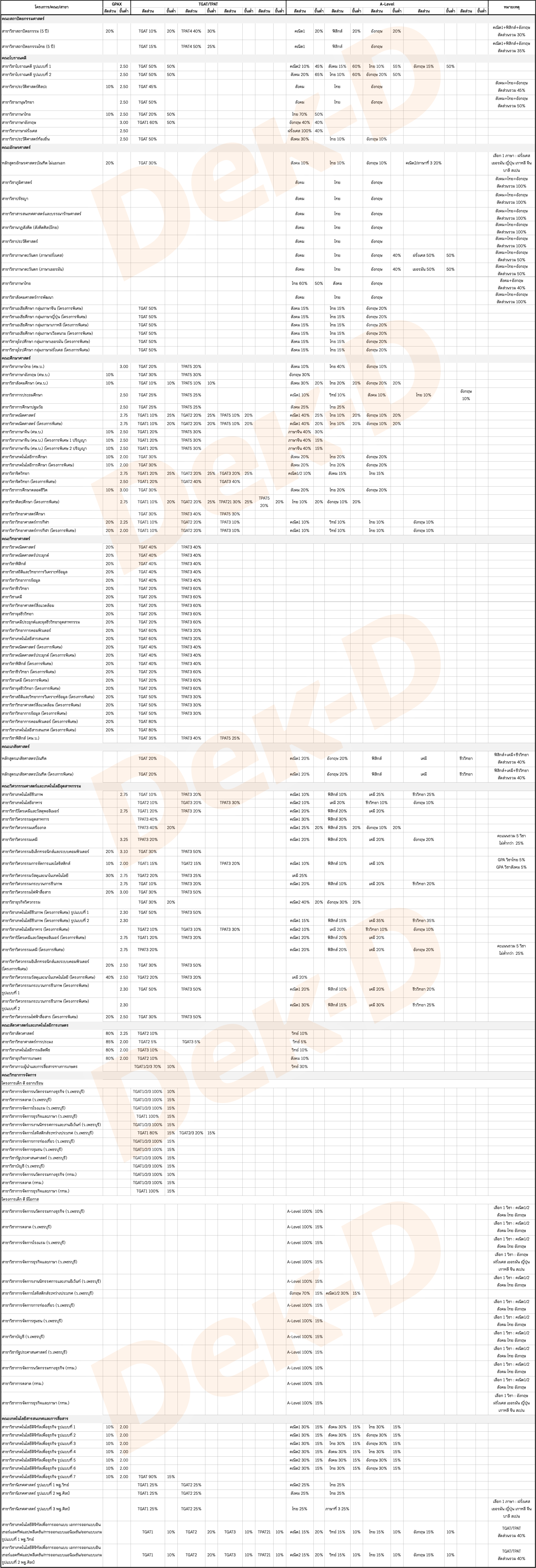 2. หลายคณะใช้คะแนน GPAX เป็นสัดส่วน หรือค่าน้ำหนักในการพิจารณาคัดเลือก เช่น