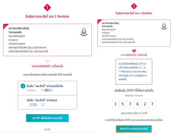 ระบบจะให้เลือกช่องทางที่จะรับรหัส OTP (One Time Password) ว่าจะผ่านเบอร์มือถือ หรือผ่านอีเมล จากนั้นก็นำรหัสผ่านไปใส่ให้เรียบร้อย ก็จะเท่ากับเป็นการยืนยันการสละสิทธิ์แล้ว