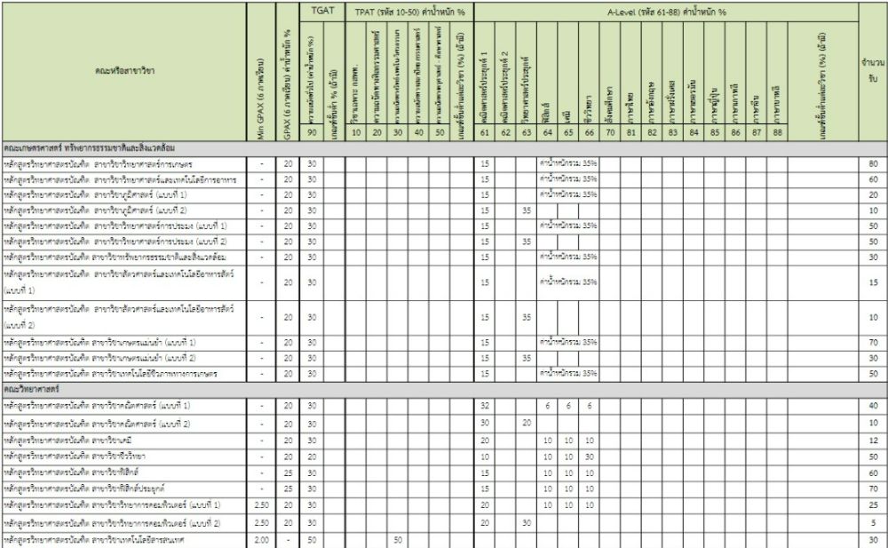 - คณะเภสัชศาสตร์ สาขาวิชาวิทยาศาสตร์เครื่องสำอางและผลิตภัณฑ์ธรรมชาติ กำหนดขั้นต่ำ 20%
