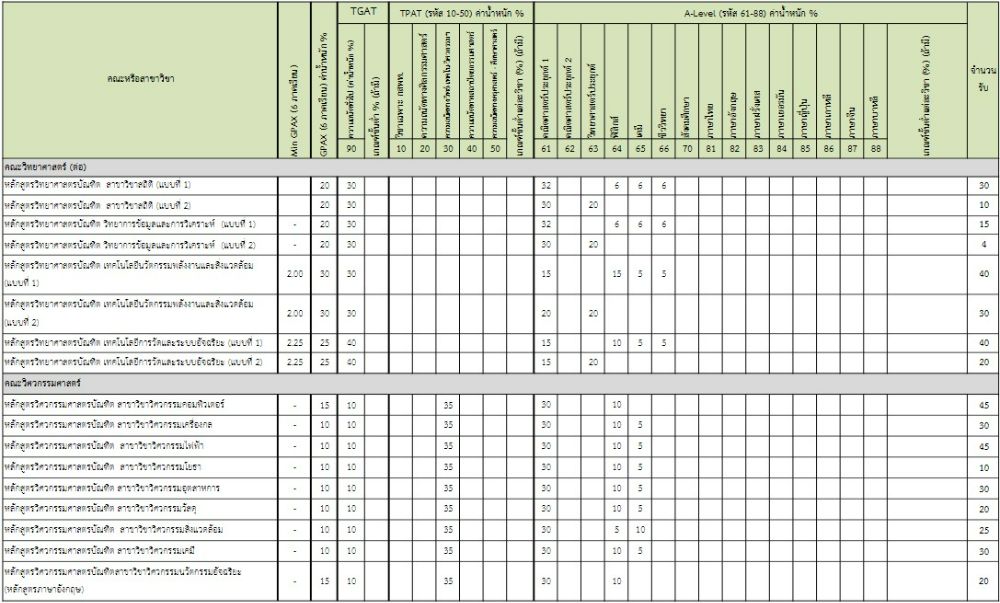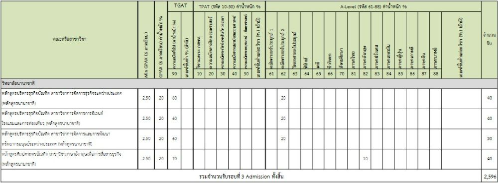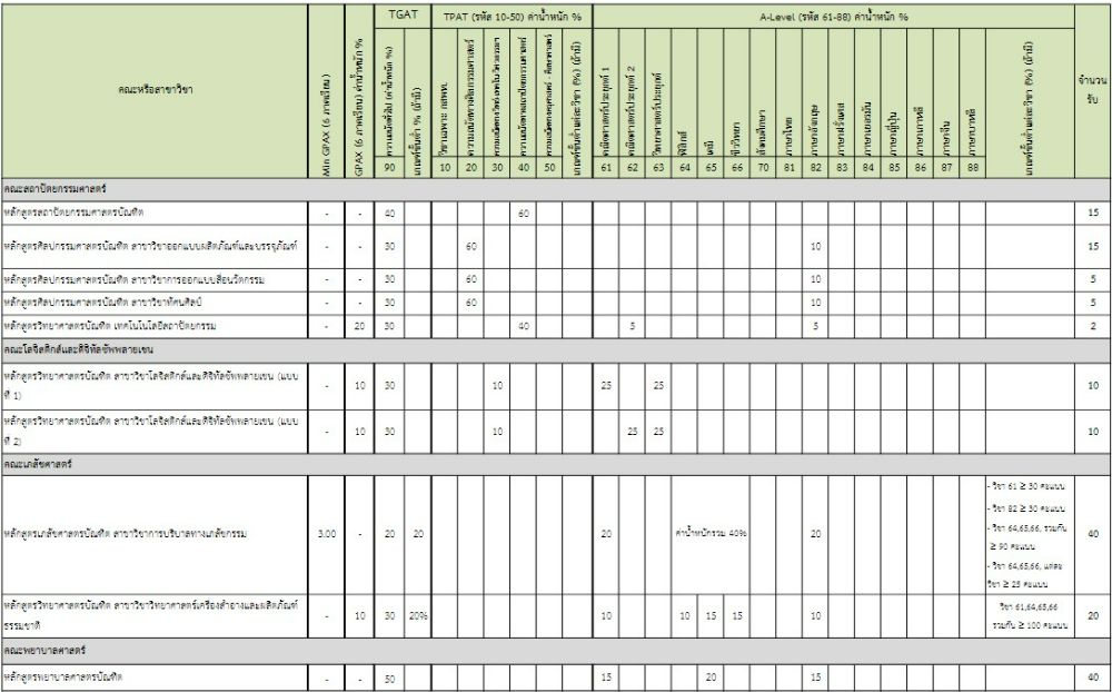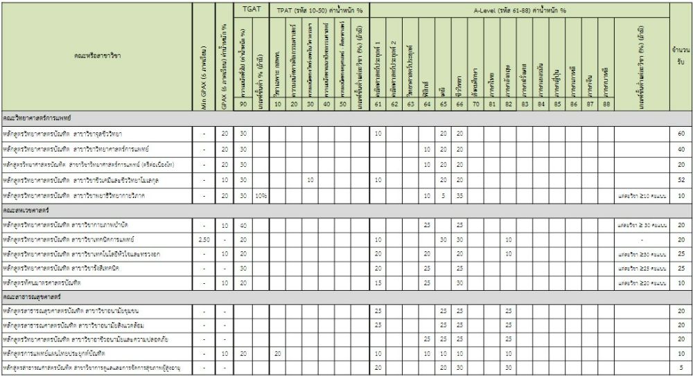 - เปิดรับกี่สาขา : รวม 100 รหัสสาขา (รวมสาขาเดียวกันแต่รับหลายรูปแบบ)