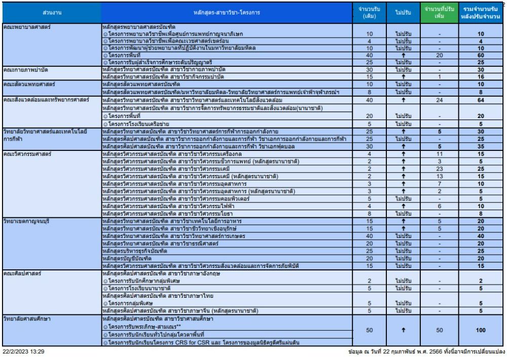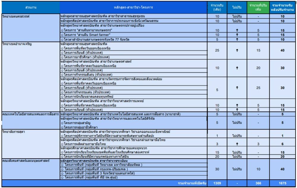- 1. สาขาวิชาเทคโนโลยีการอาหาร รับเพิ่ม 5 คน (จาก 15 เป็น 20 คน)