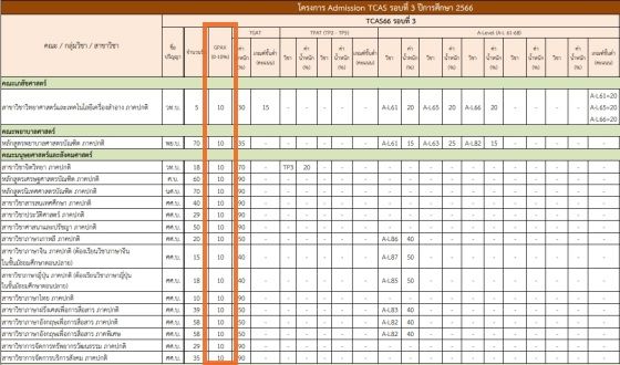 หมายความว่า GPAX นั้นถูกกำหนดให้เป็นหนึ่งในเกณฑ์การคัดเลือก มีการกำหนดค่าน้ำหนักชัดเจนว่าจะใช้ในสัดส่วนเท่าไหร่ ใครได้เกรดดีก็มีโอกาสมากกว่า
