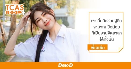 สำหรับน้องๆ ที่เป็นเด็กกิจกรรม หรือชื่นชอบการทำงานจิตอาสา โครงการนี้เป็นโครงการในระบบ TCAS รอบ 2 ของมหาวิทยาลัยธรรมศาสตร์ที่น่าสนใจและอยากแนะนำให้น้อง ๆ ลองสมัครกันเข้ามาดู อย่าเพิ่งกังวลเรื่องความโดดเด่นของกิจกรรม เพราะท้ายที่สุดแล้ว สิ่งสำคัญกว่าคือศักยภาพในการนำเสนอคุณค่าที่เราให้ต่อกิจกรรมนั้น ๆ ว่าเป็นกิจกรรมที่สื่อถึงความเป็นจิตอาสาอย่างไร โดยไม่ได้จำกัดการตีความคำว่าจิตอาสา รวมถึงการคำนึงภาพรวมว่าตัวเราเองและผู้อื่นได้เรียนรู้ทักษะ ประสบการณ์ หรือประโยชน์จากสิ่งที่ทำอย่างไร ซึ่งหากน้องๆ ผ่านเข้ามาได้แล้ว ก็จะได้พบประสบการณ์ดีๆ อีกมากมายในรั้วมหาวิทยาลัยค่ะ