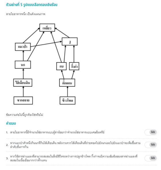 สำหรับข้อสอบเชิงซ้อน คือ ข้อสอบที่ใน 1 ข้อจะมีข้อย่อยอีก 3 ข้อ ให้เลือกตอบ "ใช่หรือไม่ใช่" คะแนนจะลดหลั่นไปตามจำนวนข้อที่ตอบถูกค่ะ จึงคิดว่าพาร์ทนี้จะต้องใช้เวลามากกว่าปกติ เพื่ออ่านและวิเคราะห์ให้ละเอียดขึ้น