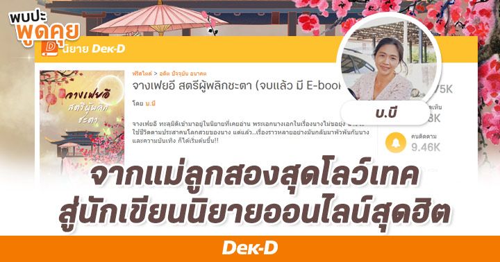 พบปะพูดคุยวันนี้ ชวนทุกคนมาทำความรู้จัก ‘แบ๊ว’ จากคุณแม่ลูกสองสุดโลว์เทค สู่นักเขียนนิยายออนไลน์สุดฮิต มาตามดูกันว่าเธอเรียนรู้อะไรจากการเป็นนักอ่าน แล้วเธอฝ่าฟันอุปสรรคการเป็นนักเขียนจนมาแต่งนิยายปังๆ ได้อย่างไร มารับแรงบันดาลใจดีๆ กัน!