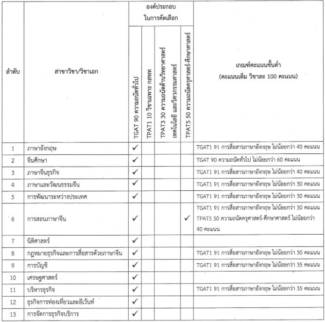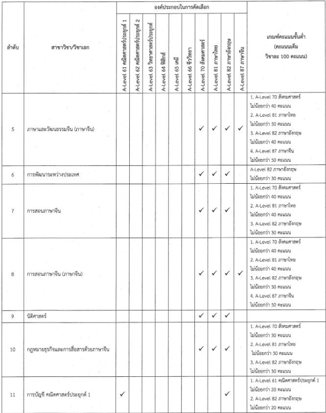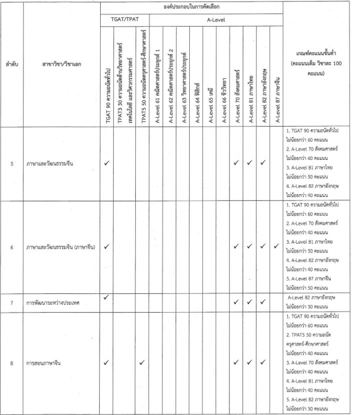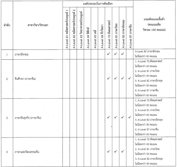 5. ระวัง! กลุ่มสาขาที่เกี่ยวกับภาษาจีน รูปแบบการใช้ผลคะแนน A-Level จะกำหนดขั้นต่ำ A-Level วิชาภาษา ไว้ค่อนข้างสูง ทั้ง สาขาวิชาจีนศึกษา (ภาษาจีน), ภาษาจีนธุรกิจ (ภาษาจีน), ภาษาและวัฒนธรรมจีน (ภาษาจีน) เป็นต้น ซึ่งจะกำหนดไว้ทั้งวิชาภาษาไทย ภาษาอังกฤษ ภาษาจีน และวิชาสังคมศึกษา