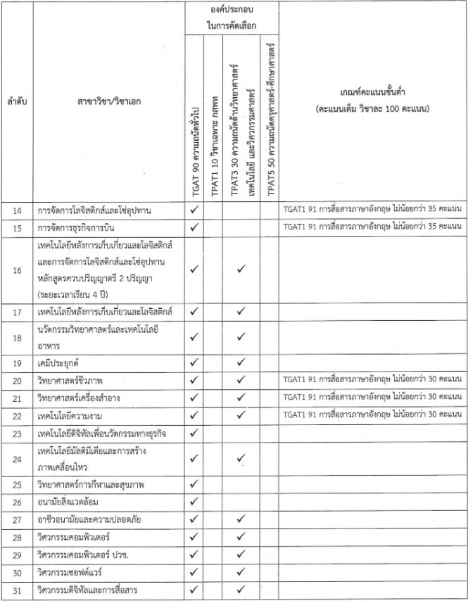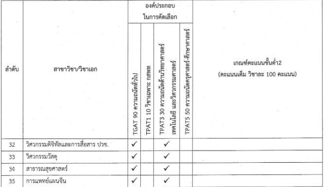 9. รูปแบบใช้คะแนน TGAT/TPAT หลักสูตรวิศวกรรมศาสตร์และหลักสูตรวิทยาศาสตร์ จะต้องใช้คะแนน TPAT3 ความถนัดด้านวิทยาศาสตร์ เทคโนโลยี และวิศวกรรมด้วย