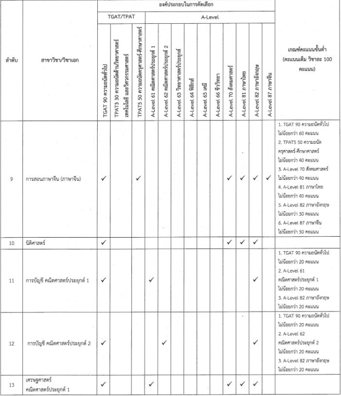 - เกณฑ์หลักๆ ที่ใช้ : TGAT/TPAT, A-Level