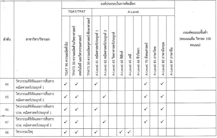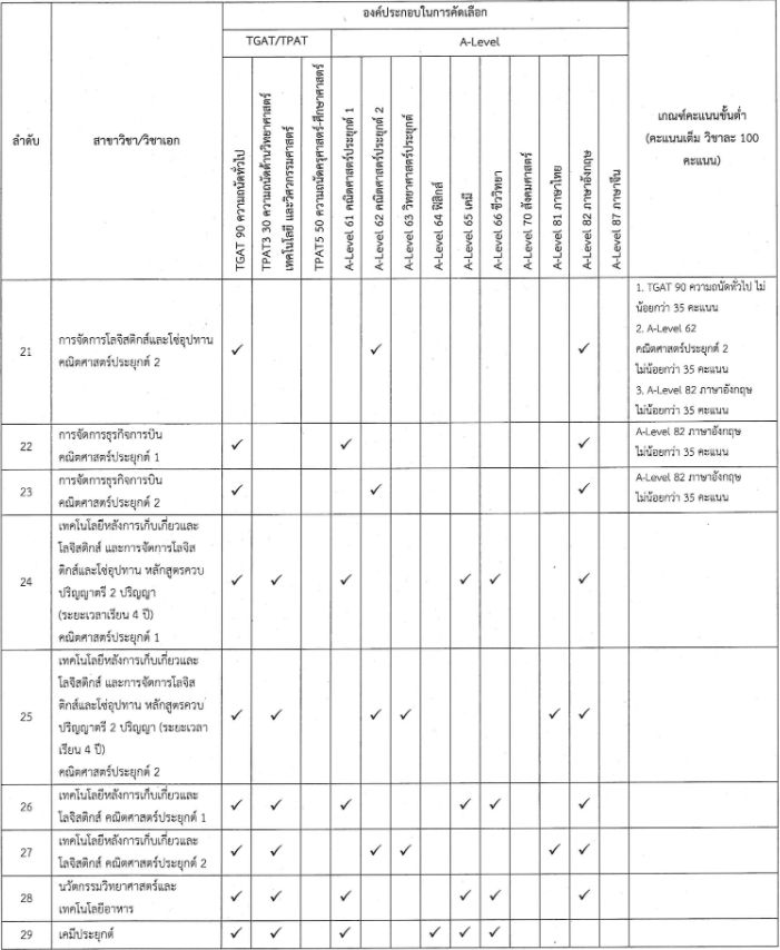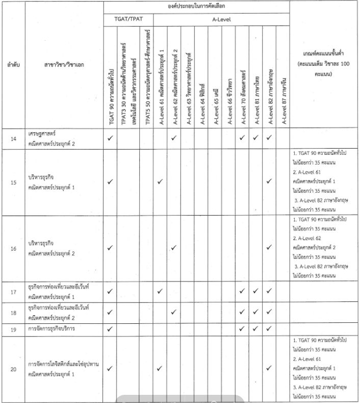 - เกณฑ์ขั้นต่ำ : หลายคณะมีการกำหนเกณฑ์ขั้นต่ำ A-Level และ TGAT