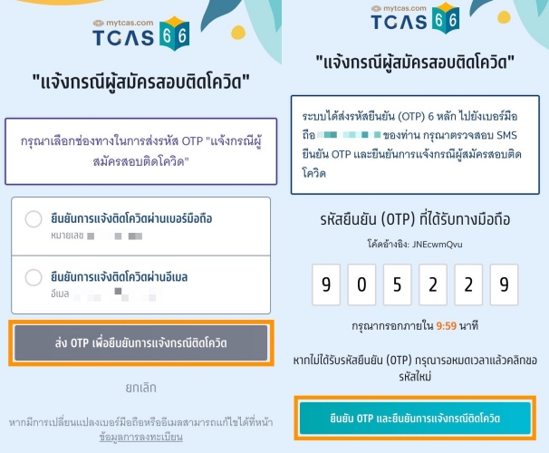 เลือกช่องทาง รับรหัสยืนยัน OTP ผ่านเบอร์โทรศัพท์ หรือ อีเมล และ กรอกรหัสที่ได้รับให้ถูกต้อง