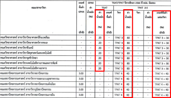 5. ทำความเข้าใจศัพท์ หรือเงื่อนไขต่างๆ ในการคัดเลือกให้ดี โดยเฉพาะเรื่องของ "เกณฑ์ขั้นต่ำ หรือคะแนนขั้นต่ำ" ที่มักจะระบุเป็นเปอร์เซนต์ (%) ซึ่งจะมีความแตกต่างกับ "ค่าน้ำหนัก หรือสัดส่วนคะแนน" เพราะถ้าคะแนนสอบของผู้สมัคร ไม่ถึงเกณฑ์ขั้นต่ำตามที่กำหนดไว้ ก็จะไม่สามารถยื่นสมัครในสาขาวิชานั้นๆ ได้เลย แต่ถ้าเป็นค่าน้ำหนัก ก็จะเป็นส่วนที่บอกว่าจะใช้คะแนนรายวิชาไหนมาก หรือน้อยยังไงเท่านั้น