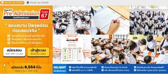 Tip! ที่สนามของ Dek-D's PreAdmission ซึ่งจะเปิดสอบทั้ง TGAT/TPAT และ A-Level ทุกปี น้องๆ จะได้ทดลองแนวข้อสอบที่ใกล้เคียงกับข้อสอบจริงเพราะออกตามแนว Test Blueprint ที่ออกโดย ทปอ. พร้อมกับได้สัมผัสประสบการณ์ในสนามสอบจริง เพราะสนามสอบส่วนใหญ่ เป็นสนามสอบจริงของการสอบ TGAT/TPAT และ A-Level ด้วย รายละเอียด https://www.dek-d.com/pre-admission/