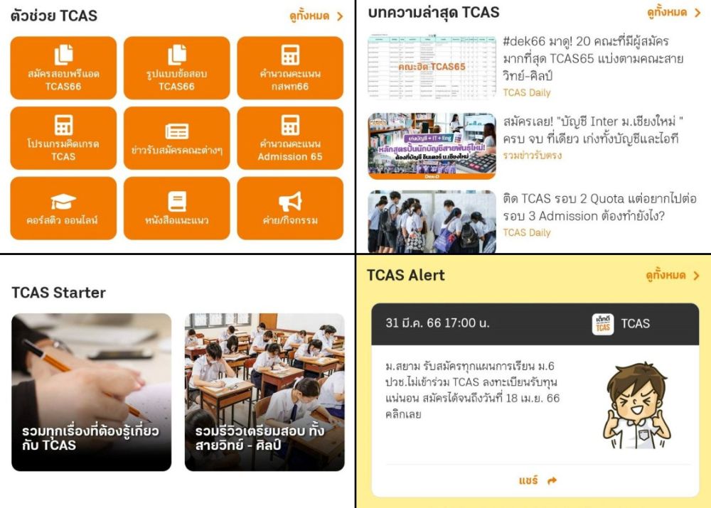 Tip! การติดตามข่าว ควรเช็กทุกวัน หรือ อย่างน้อยอาทิตย์ละ 2-3 ครั้ง เพราะข่าวเปลี่ยนแปลงได้เสมอและจะมีเยอะมากๆ ในช่วงเปิดรับสมัครรอบต่างๆ ค่ะ หากใครไม่ว่างติดตามข่าวด้วยตัวเอง แนะนำแอปเด็กดี TCAS โหลดครั้งเดียว แจ้งเตือนฟรีตลอดปี เพราะมีฟังก์ชัน Alert ข่าวอะไรมาใหม่ น้องๆ ได้รู้พร้อมเพื่อนแน่นอน